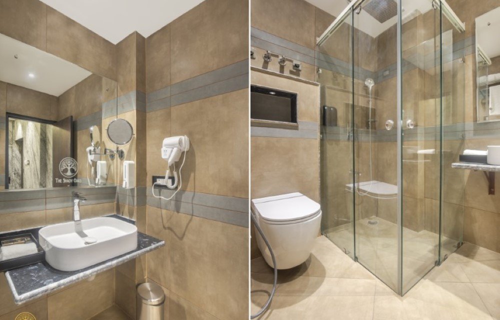 The bathroom attached to the Deluxe Room follows a simple and hygienic design. Fixtures are functional, with a shower area, washbasin, mirror, and basic toiletries provided for everyday use. Water pressure and lighting are arranged for practical comfort rather than luxury, keeping the experience reliable and straightforward. Clean towels and essential amenities support both short visits and longer stays without complication.